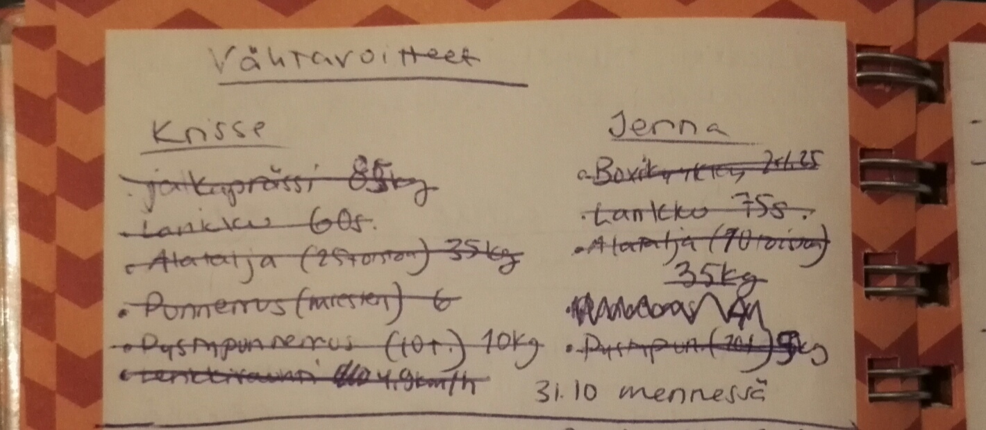 Tuhon ja Töhön treenipäiväkirja